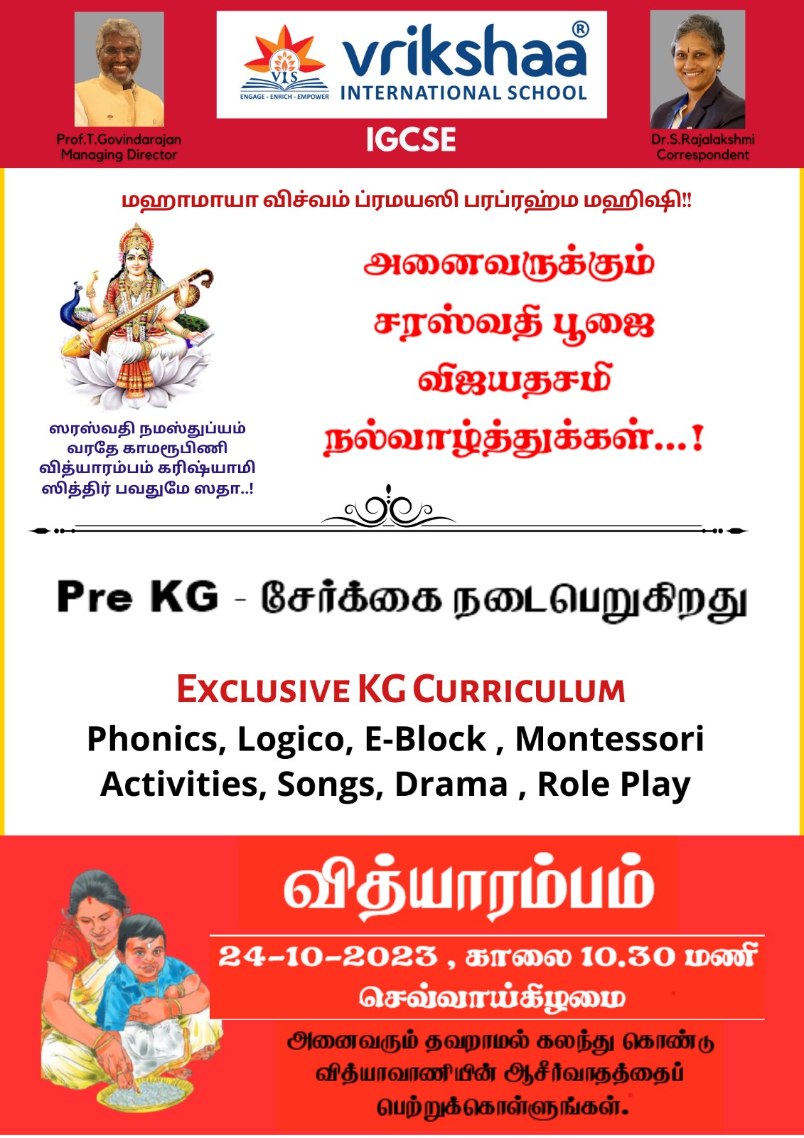 Vijayadasami Vidhyarambam Vizha was celebrated in a grand manner at Vrikshaa International School.