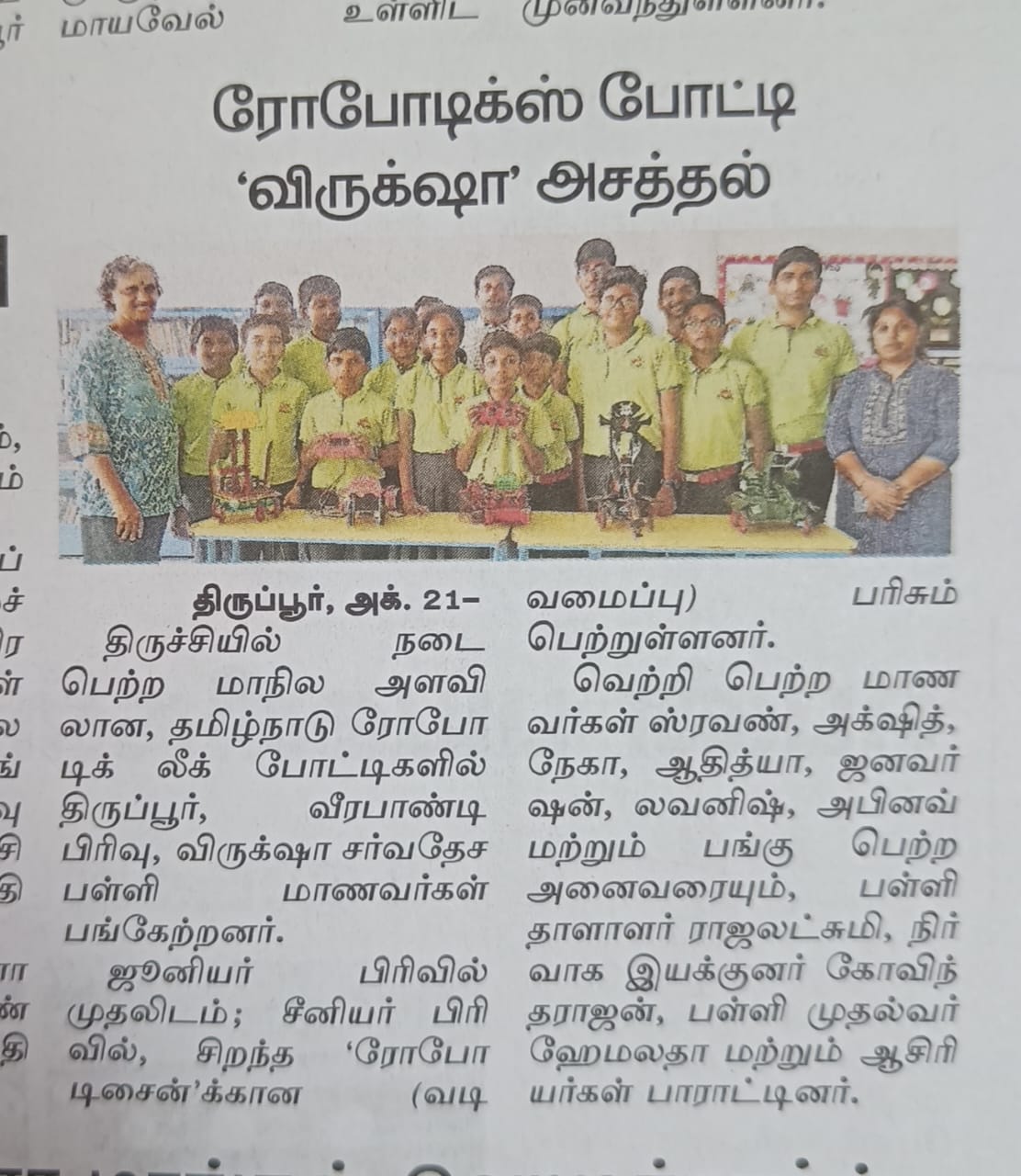 Our Vrikshites participated in the state level Tamil Nadu Robotics League competitions held at Trichy and bagged the prizes.