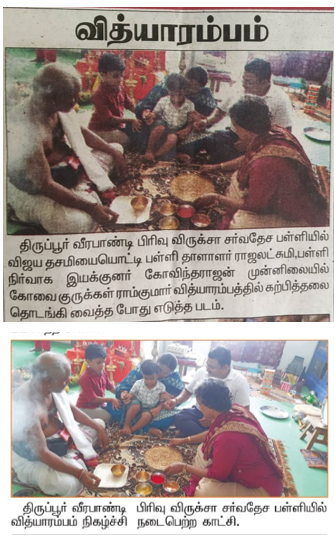 Vidhyarambam News published in Malai malar and Daily Thanthi.