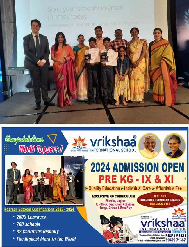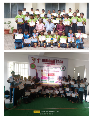 Students of Virikshaa International School, Tirupur won 10 gold, 15 silver and 8 bronze medals in the National Yoga Championship Meet held at Karur Sri Sankara Vidyalaya in general and individual categories.