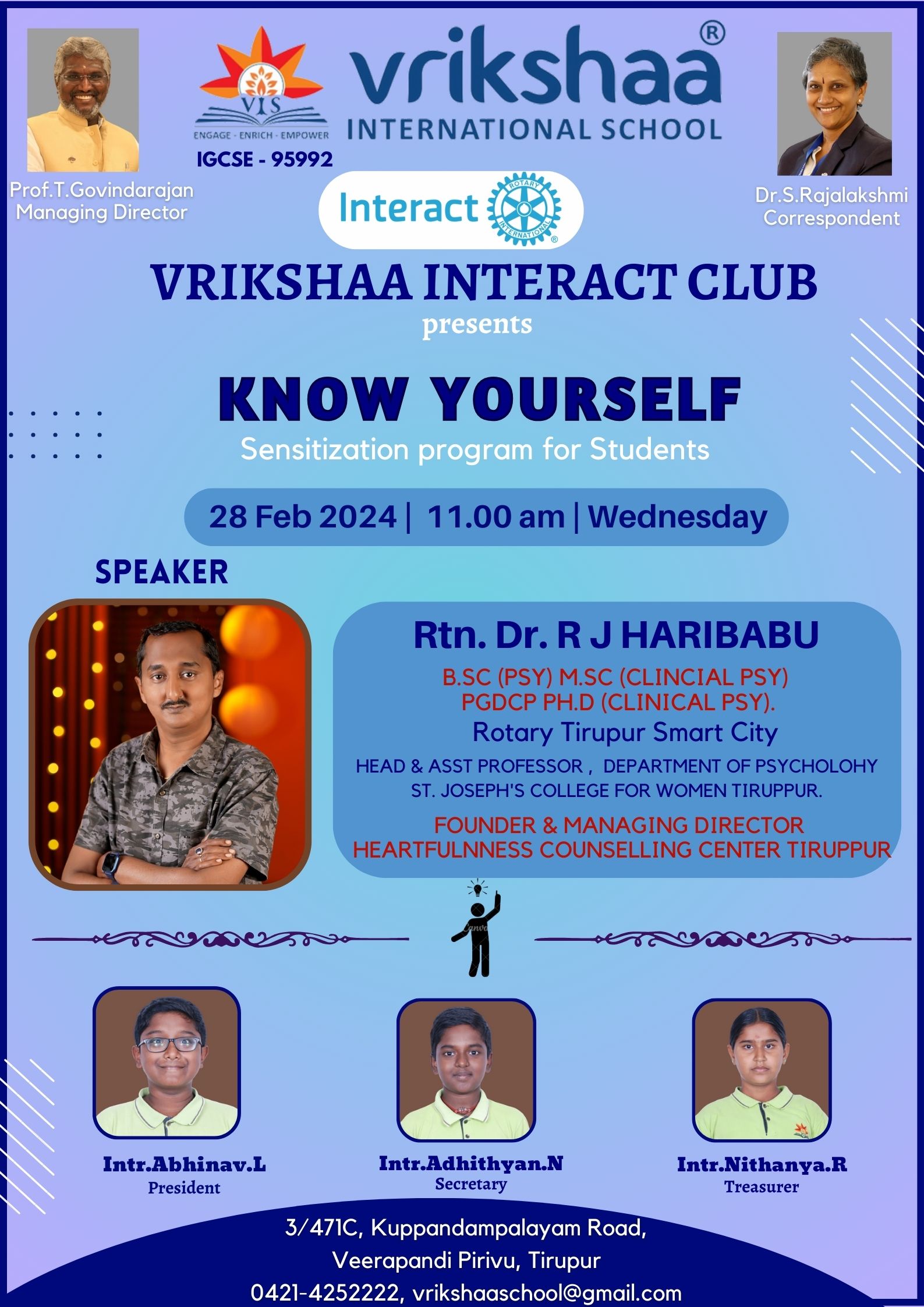 Dr.Haribabu Given a Session for Students about Know Yourself.
